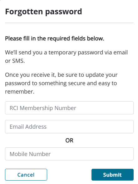 Before attempting to reset your password, ensure you have your membership number and the email/mobile number registered to your account.